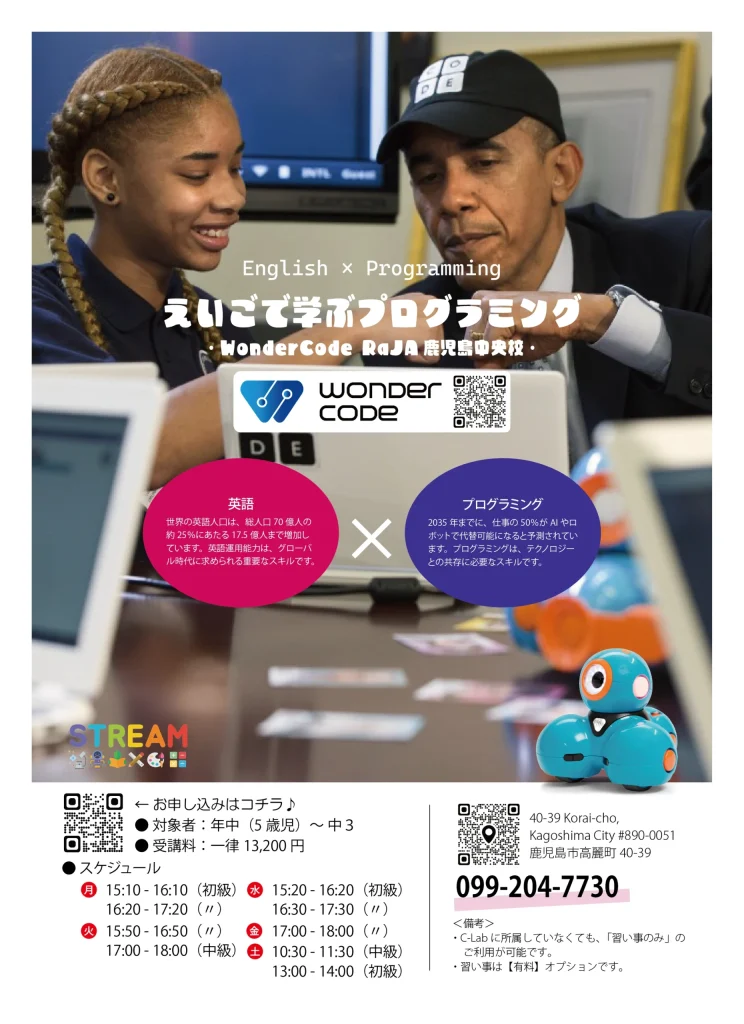 プログラミングやロボットに興味がある方も、そうでない方も「多角的思考力」を鍛えるのにとても有効な手段として、習い事に選ばれています。WonderCodeを通して、イメージする力や頭の中で設計図を描く能力、これが、実生活でも応用され、汎用性の高い柔軟な思考力を得ることができます。