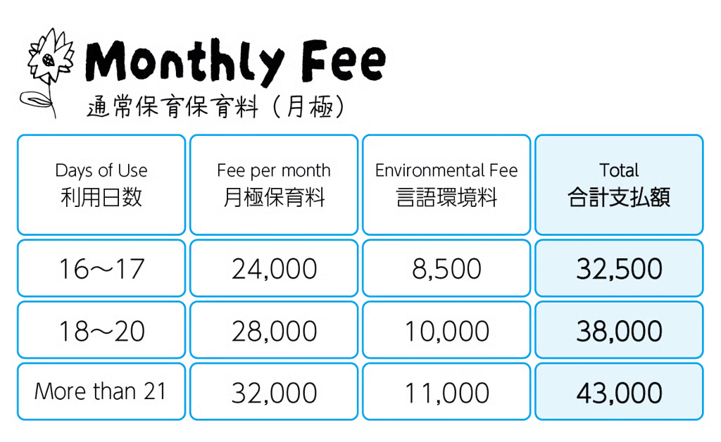 4月1日時点で0~2歳のお子様が対象の施設です。お仕事や介護などで、月に16日以上保育を必要とされるご家庭は、月極契約でのご利用が可能です。定員の空き状況、入園までの流れや必要なお手続きなどにつきましては、お気軽にお問合せください。